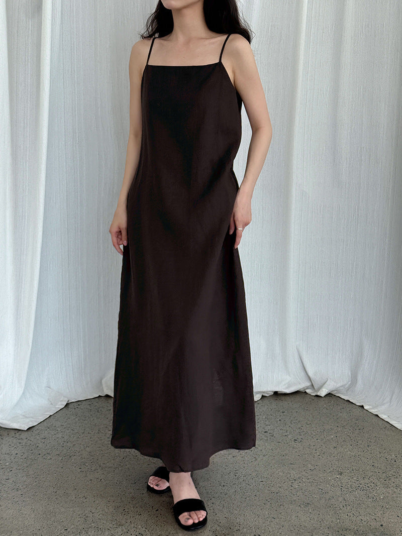 100 ramie holiday style suspender skirt summer new relaxed lazy one-word tube top dress